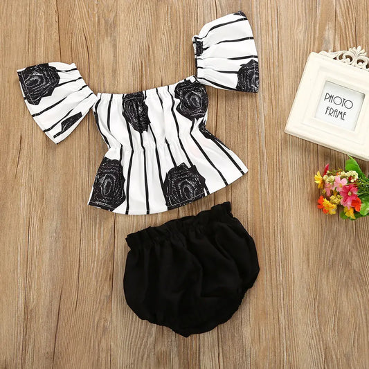 Black and White Flower Baby Off-Shoulder Top and Bloomers