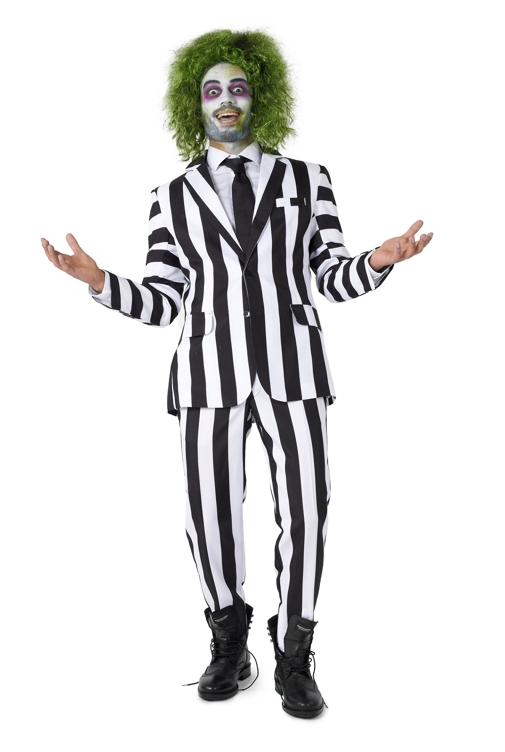 Feeling mischievous and want to leave a supernatural impression? Look no further than Suitmeister’ Beetlejuice™ Costume Suit. Dress up as the ghostly trickster this season! The slim fit outfit consists of a jacket, pants and a tie. The pants have an adjustable waistband for a perfect fit.