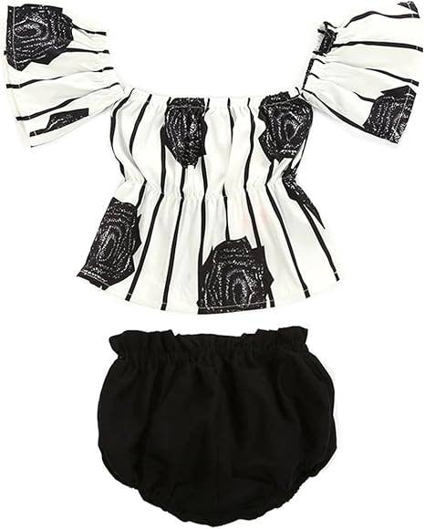 Black and White Flower Baby Off-Shoulder Top and Bloomers