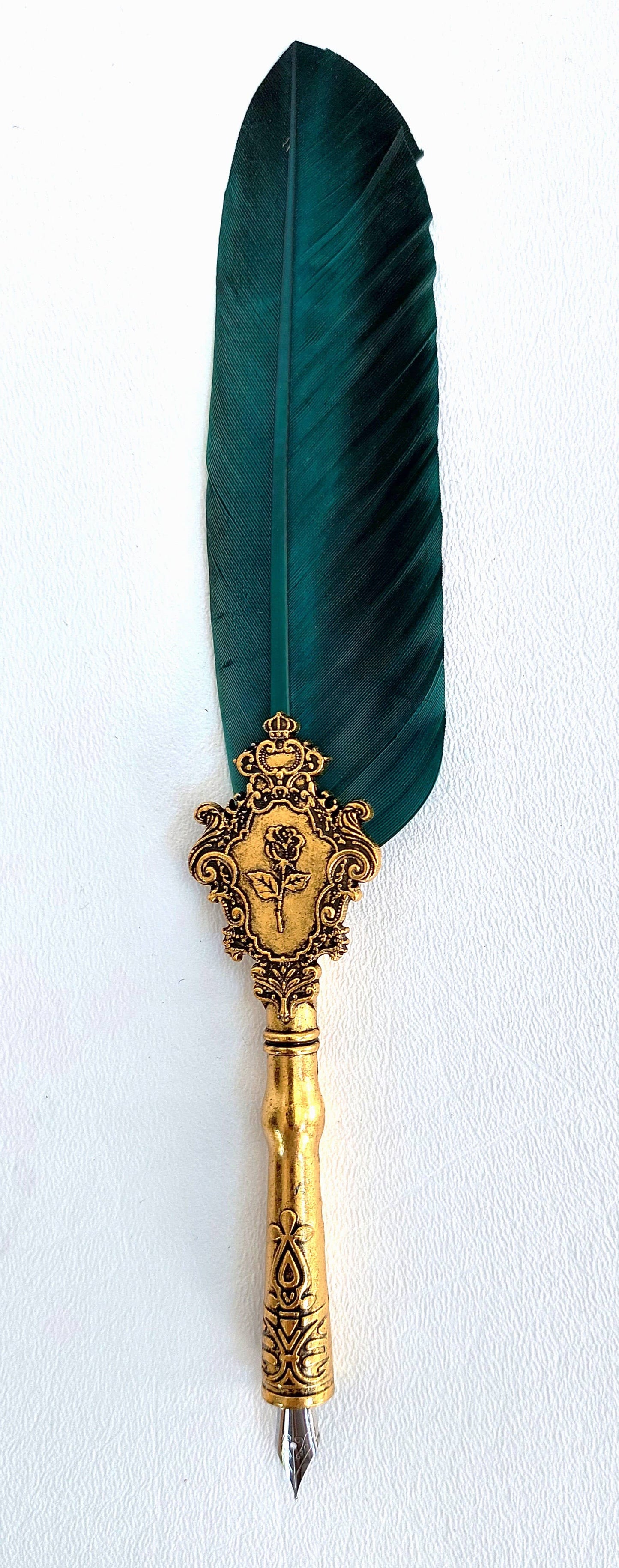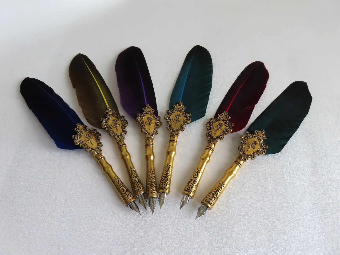 This elegant calligraphy pen and wax seal gift set. Includes 2 calligraphy pens (1 with feather, 1 without), ink bottle, letter opener, sealing wax, seal & 12 extra nibs. It is packaged in a nice gift box. The wax seal set can be used not only to seal letters, but in many other creative way: add a personal touch to wine bottle, secure a gift bag, add an accent to a special package - the possibilities are endless! Approx. 9 3/8" x 5 1/2" x 1 1/2"