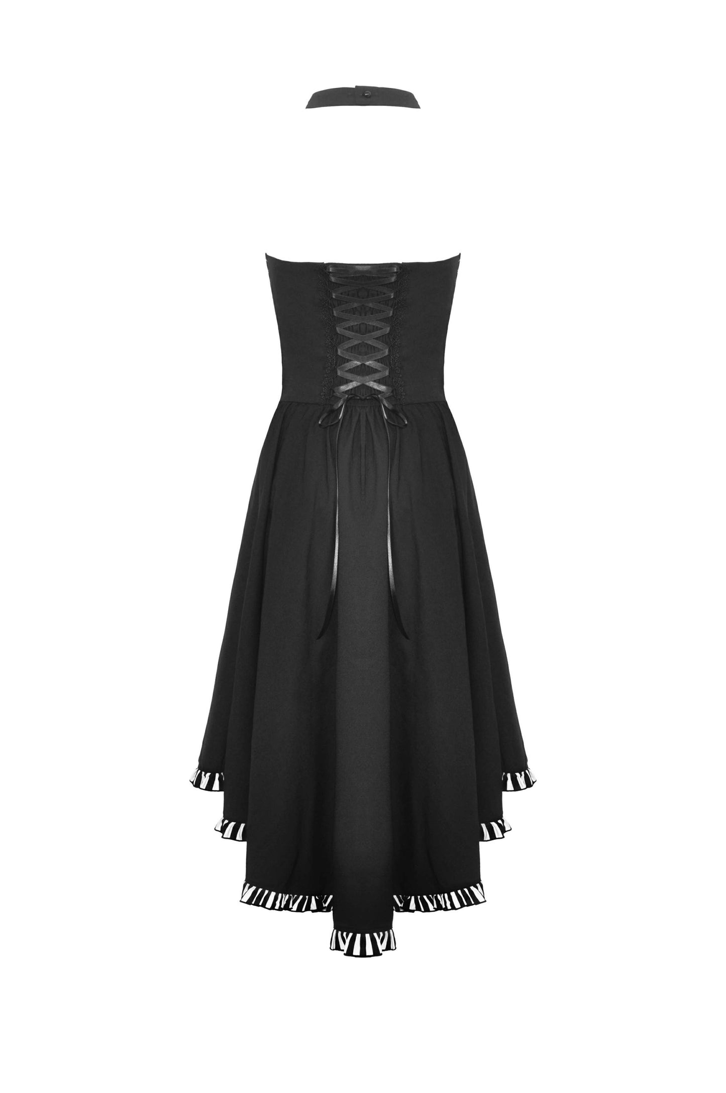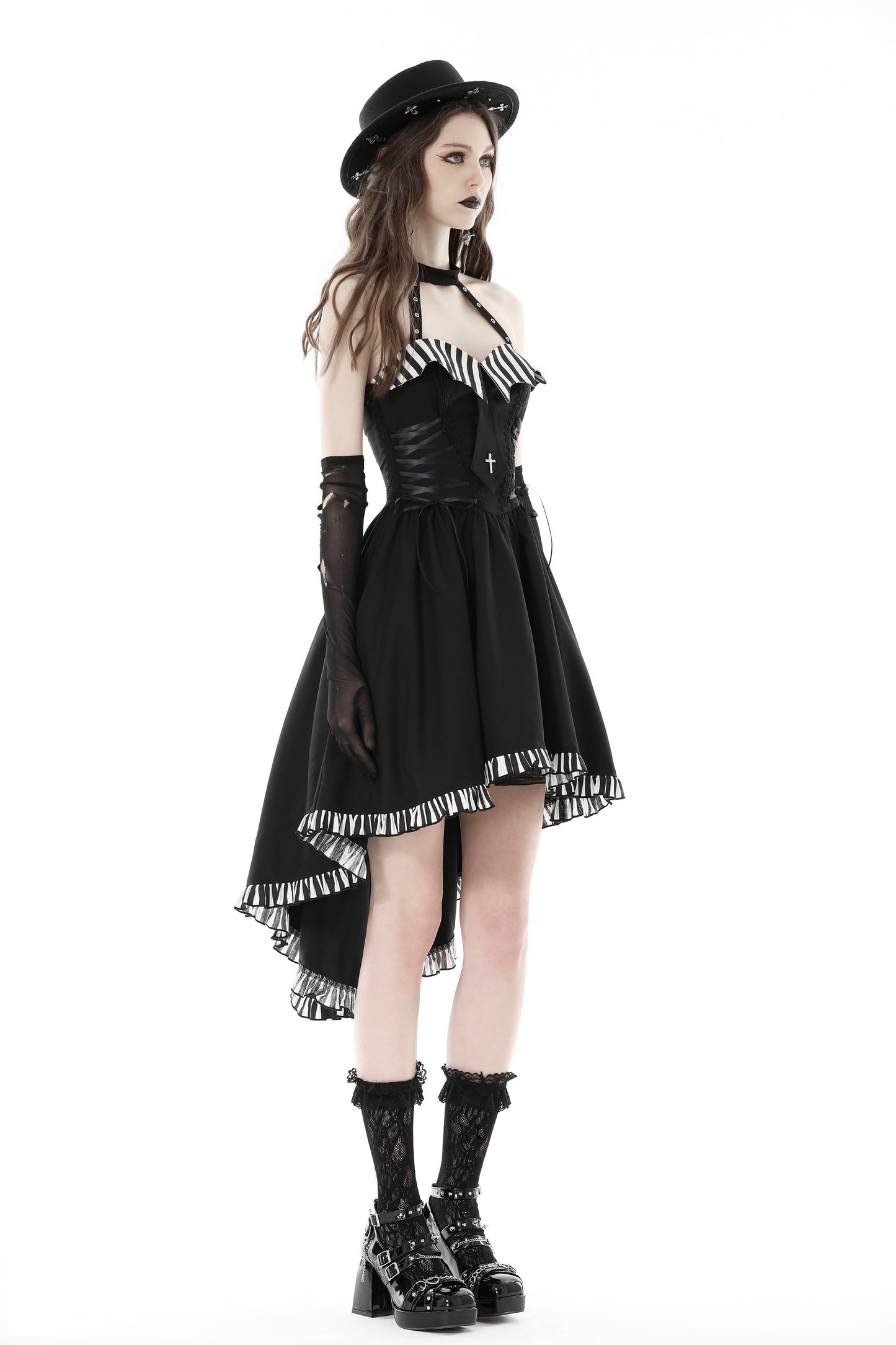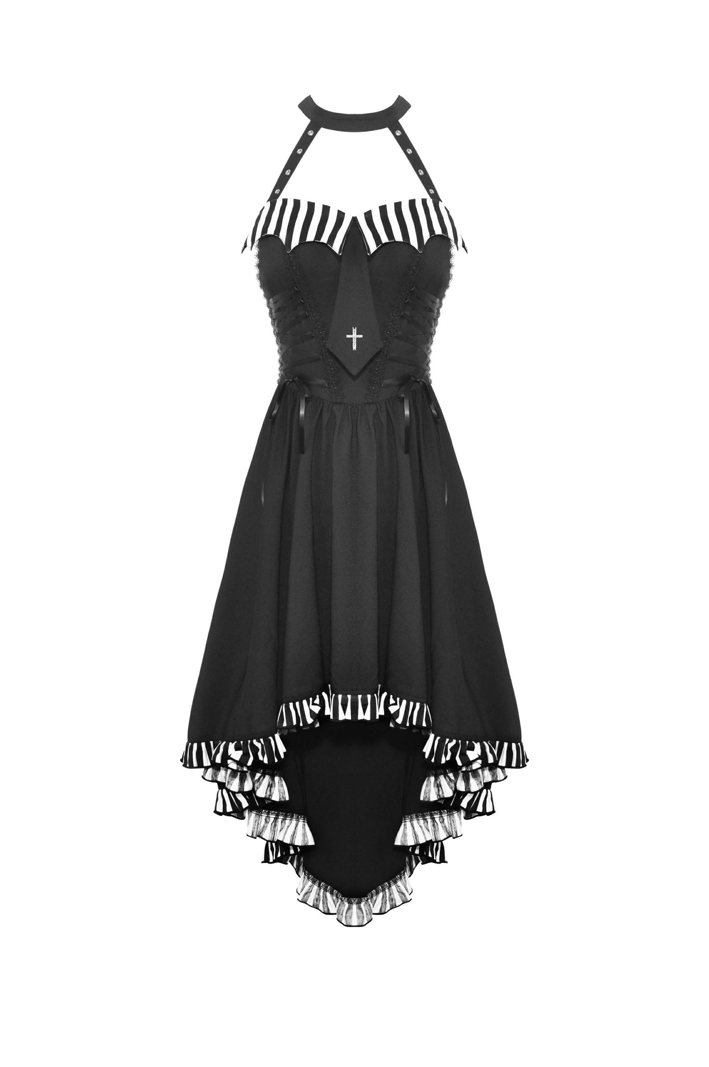 As a part of Western Fashion's exquisite collection, we present the DW773 - Black cross necktie striped prom high low dress. This dress is an elegant choice for any event, be it a prom or a party. The stylish cross necktie and the high-low design give it a unique touch, while the black stripes add a classic flair. As a family business since 1985, we ensure our items are of high quality, perfect for any occasion, be it a rave, festival, or a Renaissance party. Get ready to make a statement with this stunning dress. Runs small. Suggest sizing up 1-2 sizes.