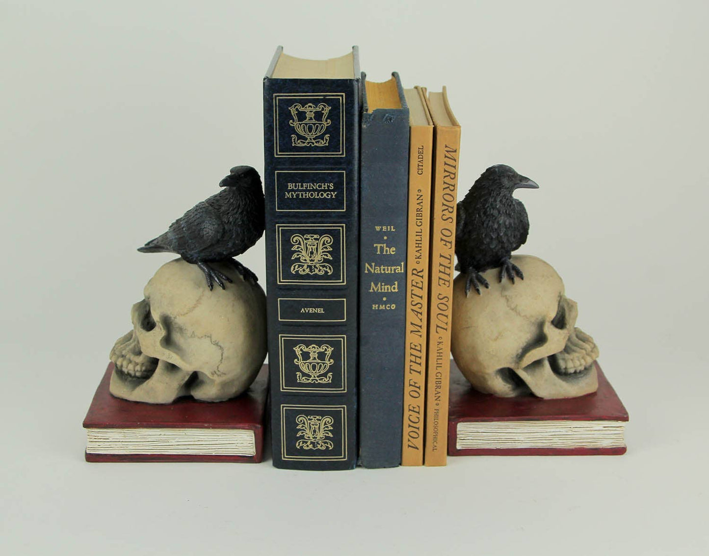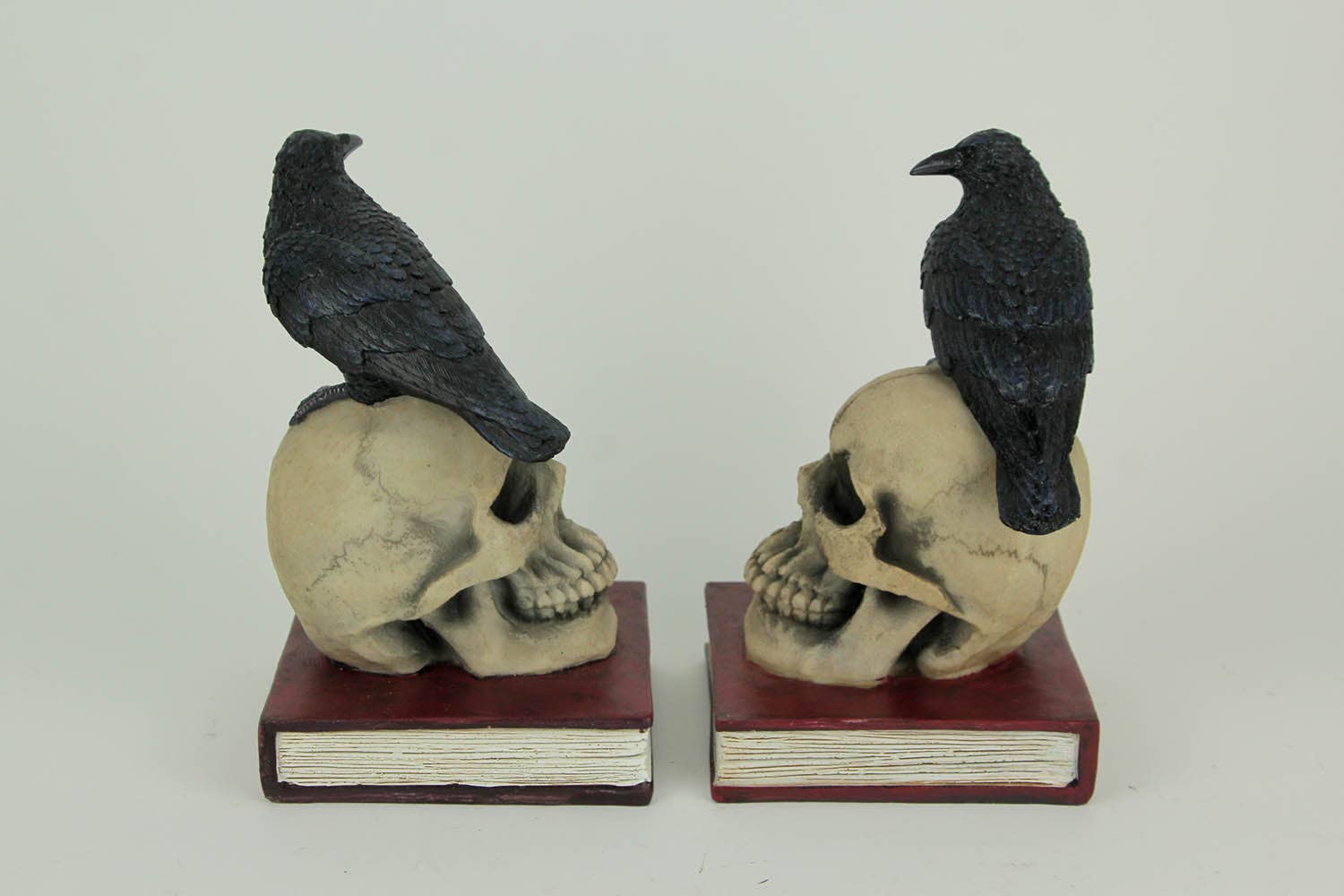 Evil Omen Raven On Skull Perch Decorative Bookend Set