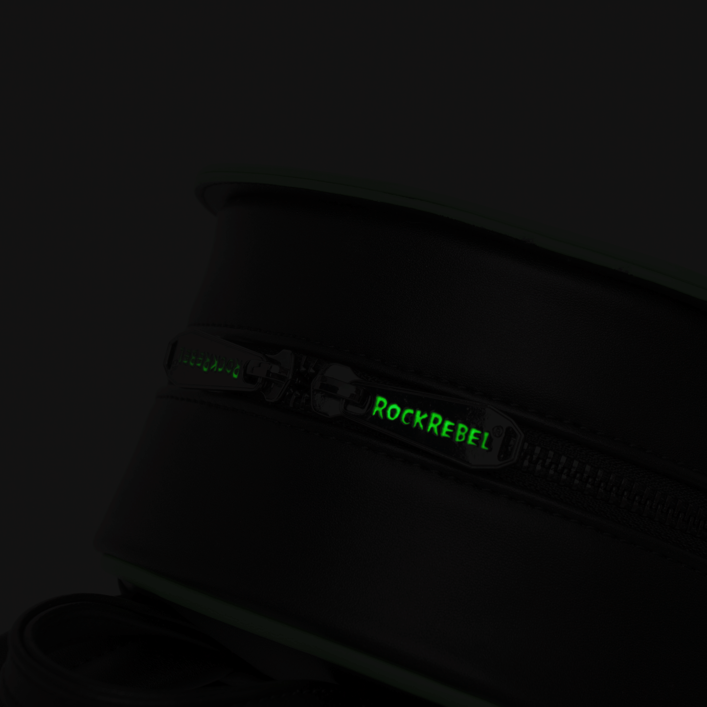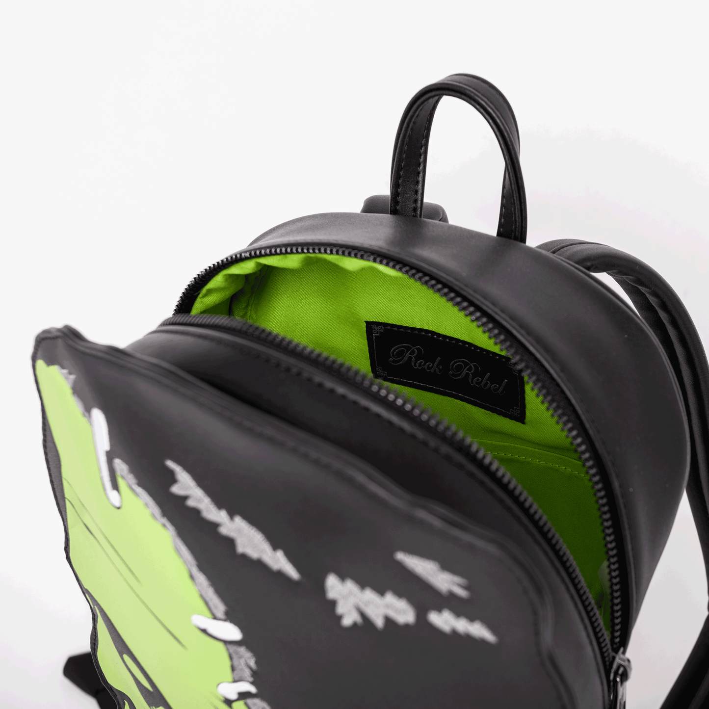a Must-have for horror movie lovers. It features a unique glow in the dark design, making it stand out even in the darkest of nights. Crafted with high-quality PU leather, this backpack is both durable and stylish. The custom glow in the dark zipper pulls add a touch of personalization. Pair it with the Bride backpack for a perfect match.