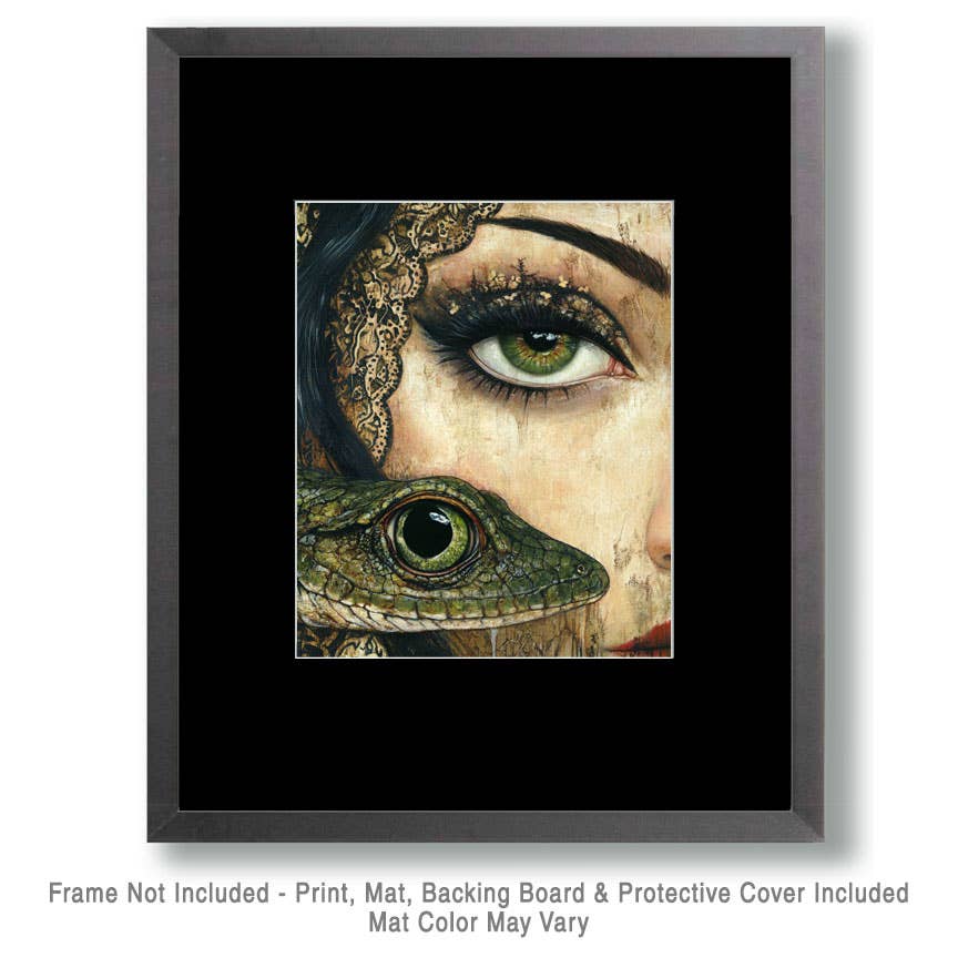 Lizard Eye - Lowbrow Wall Art Prints - w/Gold 11"x14" Frame