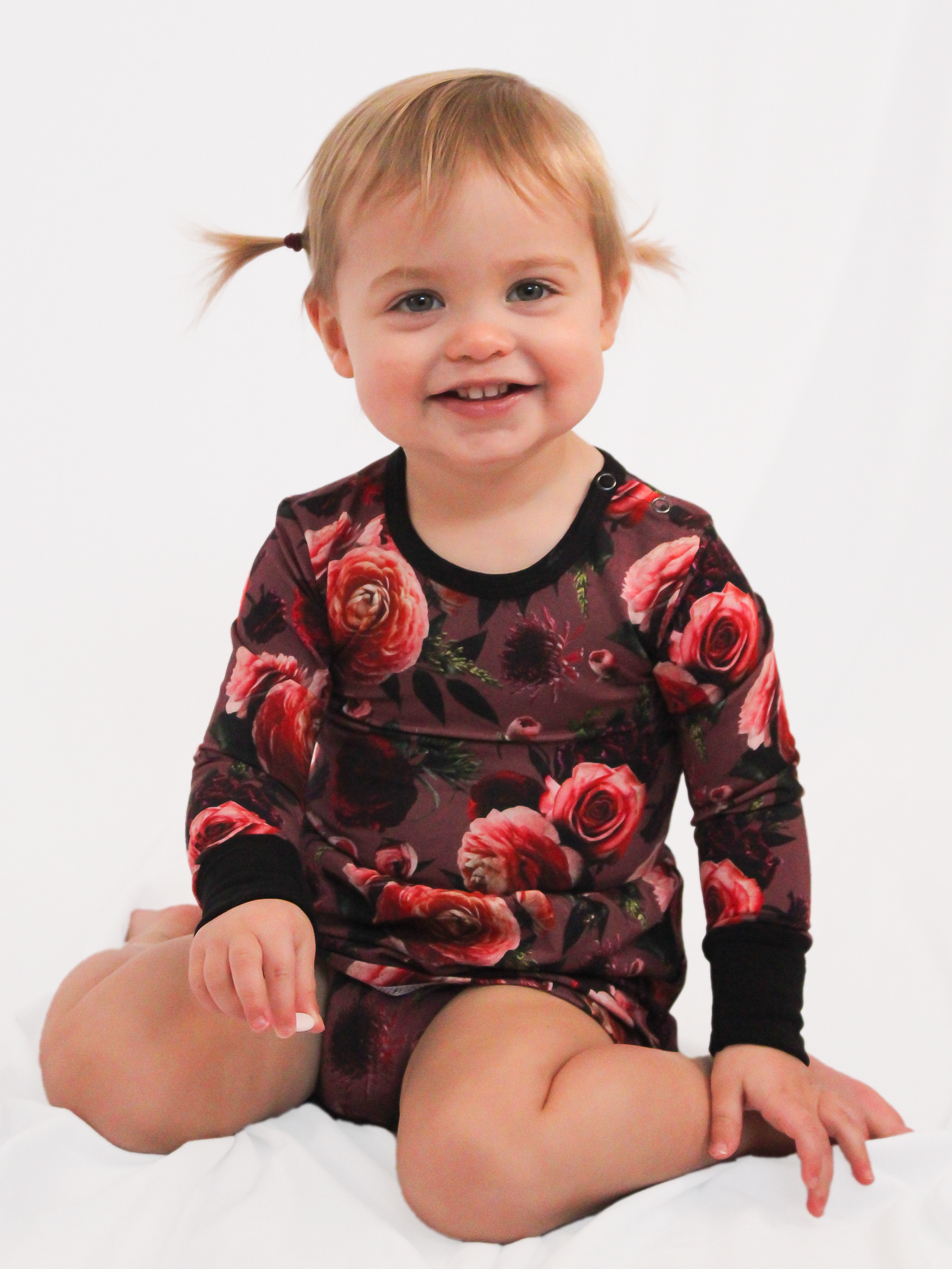 * Three snaps at bottom of bodysuit for easy diaper changes